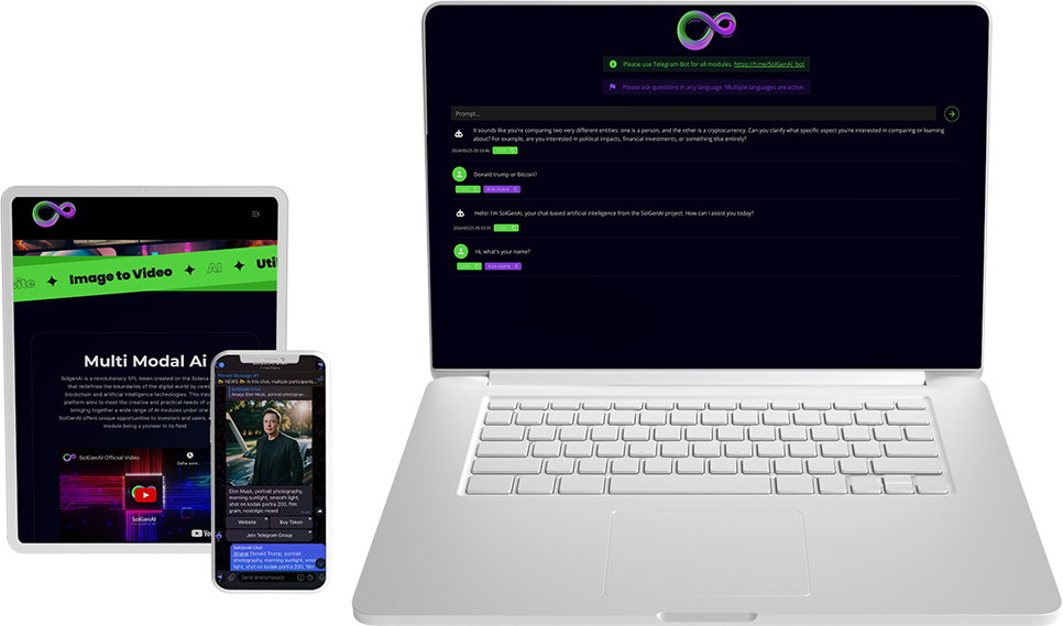SolgenAI is a revolutionary SPL token created on the Solana network that redefines the boundaries of the digital world by combining blockchain and artificial intelligence technologies. This innovative platform aims to meet the creative and practical needs of users by bringing together a wide range of AI modules under one roof. SolGenAI offers unique opportunities to investors and users, with each module being a pioneer in its field.